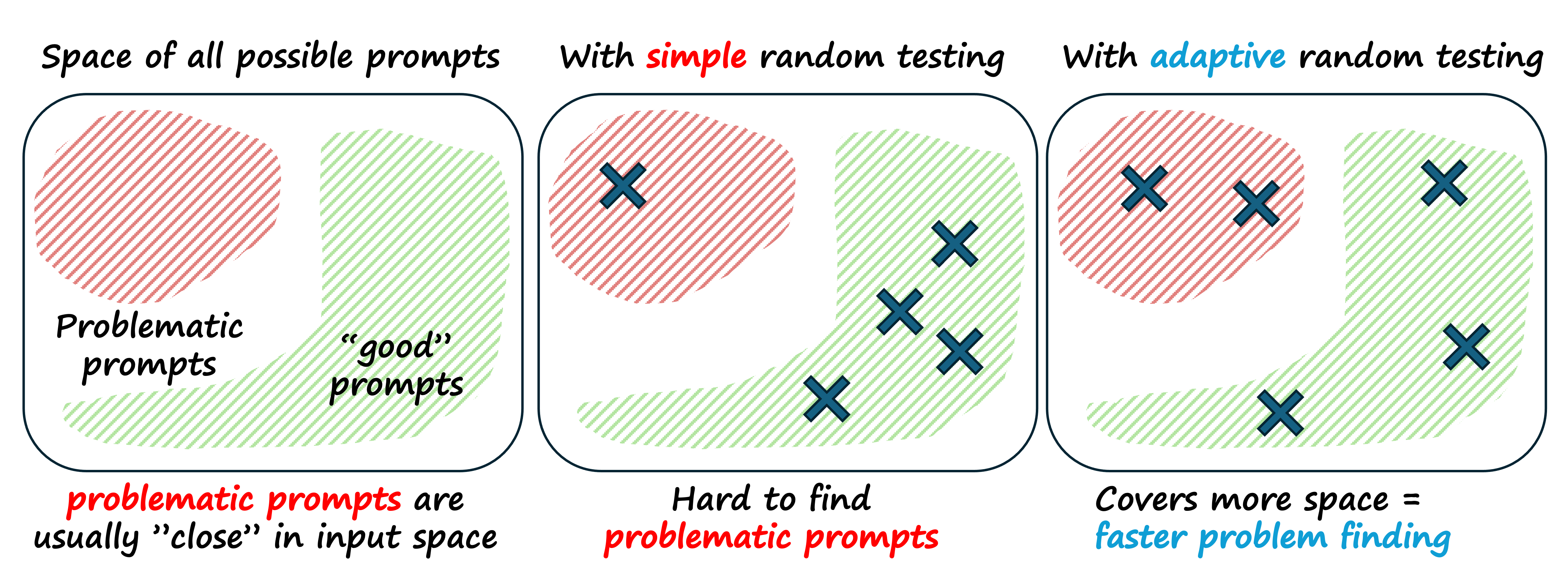 Use Adaptive Random Testing (ART) to spread test prompts across the input space instead of poking at a few convenient examples.
