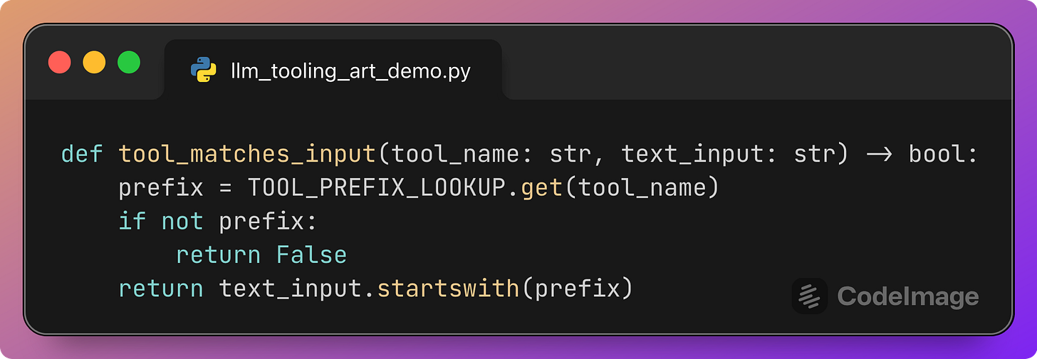 tool_nameis the name of the function called.The boolean flag is whether that tool matches the input according to